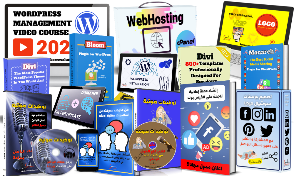 الحزمة الكاملة الوحيدة التي لن تحتاج غيرها لتضمن كل أدوات العمل المهمة المطلوبة لبدأ مشروعك على الانترنت عن طريق اتقانك لمهارة الالقاء